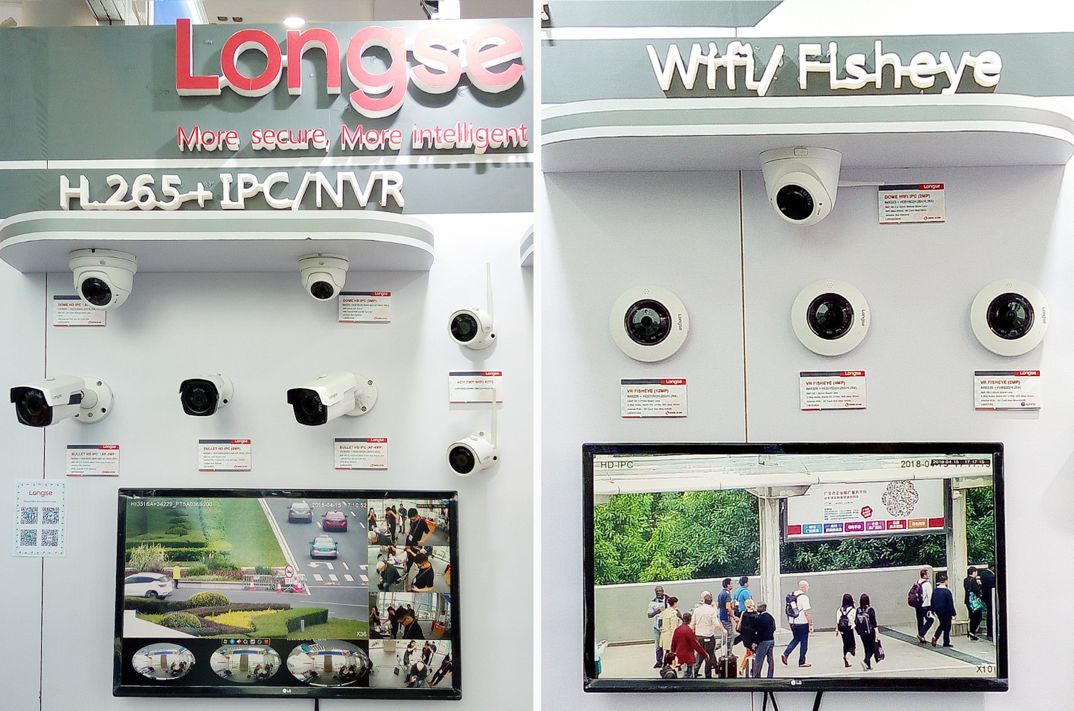 展品展臺的H.265+網絡高清攝像機/錄像機與Wifi套裝產品系列,以高清分辨率、即插即用、360度廣角拍攝等特點,通過攝像機在展館外和交通道路的現場實拍畫面,充分展示了畫面中的每一處細節(jié),使得國內外買家能近距離感受真實畫面的沖擊感,享受整個流暢過程。