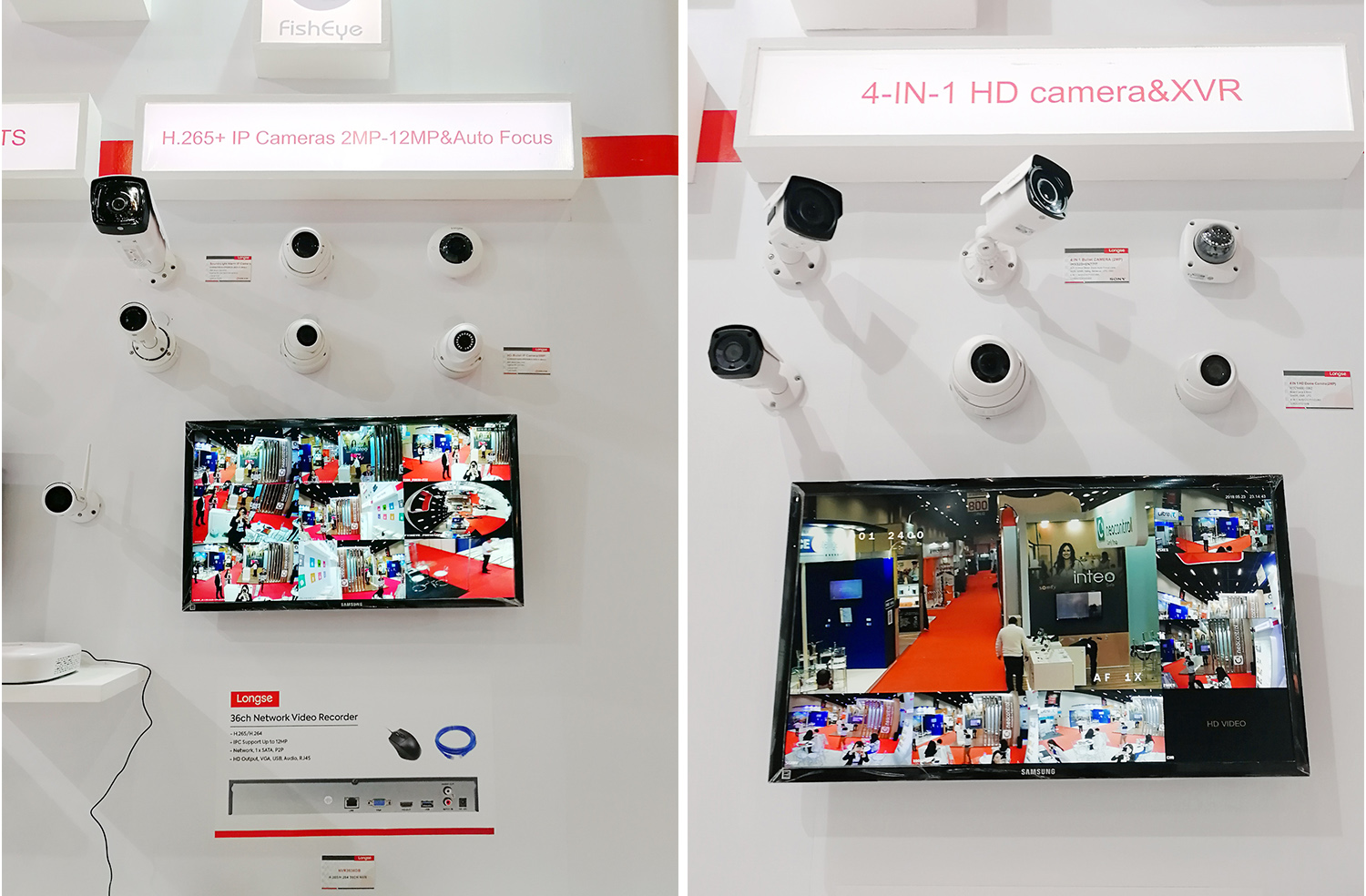 在展品展臺(tái)的H.265+網(wǎng)絡(luò)高清攝像機(jī)200萬(wàn)至1200萬(wàn)的產(chǎn)品系列及4合1同軸攝像機(jī)和XVR中,以360度廣角、高清、高靈敏度警示、多信號(hào)支持等特點(diǎn),通過(guò)攝像機(jī)在現(xiàn)場(chǎng)實(shí)拍的畫(huà)面,它們充分展示了畫(huà)面中的每一處細(xì)節(jié),尤其是4合1同軸攝像機(jī)、白光警戒槍和魚(yú)眼,使得國(guó)內(nèi)外買家能近距離感受真實(shí)畫(huà)面帶來(lái)的極致體驗(yàn),并享受整個(gè)流暢過(guò)程,歷歷在目,為安防水平提升一個(gè)新高度。