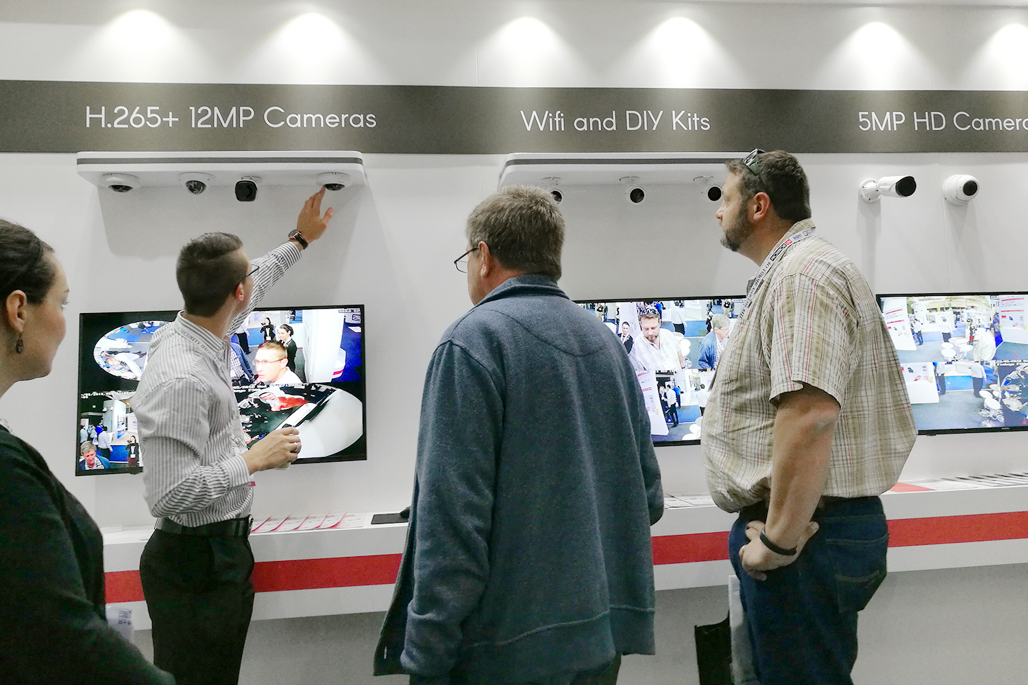 從現(xiàn)場(chǎng)上看,百萬(wàn)像素級(jí)魚(yú)眼全景攝像機(jī)的360°視角,可替代多個(gè)傳統(tǒng)攝像機(jī)結(jié)合起來(lái)的監(jiān)控效果,適用于家庭、辦公室和工廠等場(chǎng)所。此外,通過(guò)FREEIP軟件,它還能多模式展示,比如:魚(yú)眼模式、四分屏模式、VR模式、圓筒模式、壁掛模式等。吸引了眾多客戶前來(lái)感受,并體驗(yàn)現(xiàn)場(chǎng)視覺(jué)科技帶來(lái)的震撼。